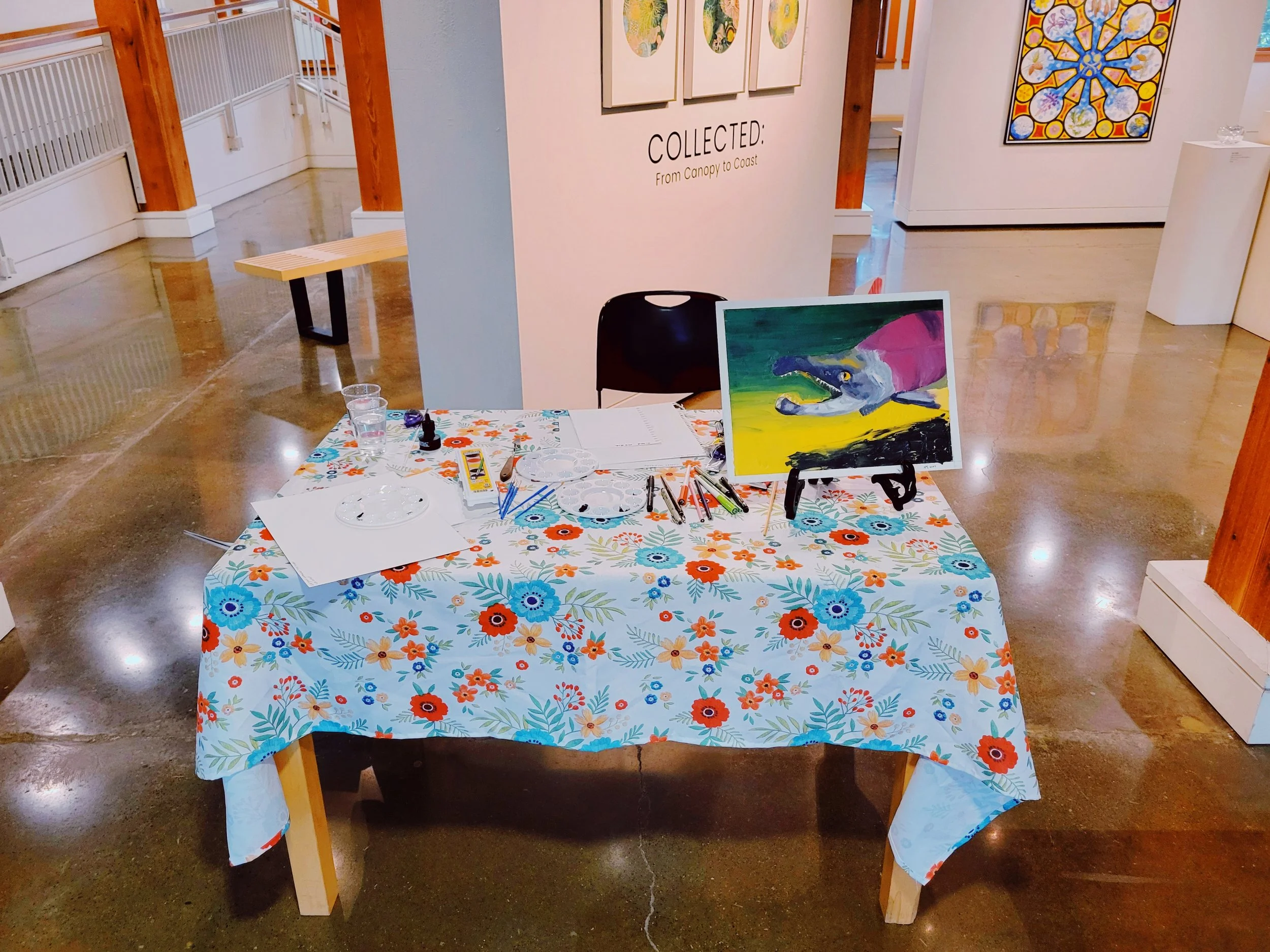 Each month, visit the CCC for the new iSpy card and seek out art pieces across our different exhibits, leading you on an adventure to explore our 5,477 sq ft. of gallery space. Careful observers who find all of the art pieces can visit the front desk and collect a unique card featuring a custom drawing commissioned from Oregon artist Noel Sherwood, Kalapuya Native American and part of the Confederated Tribes of Grand Ronde.