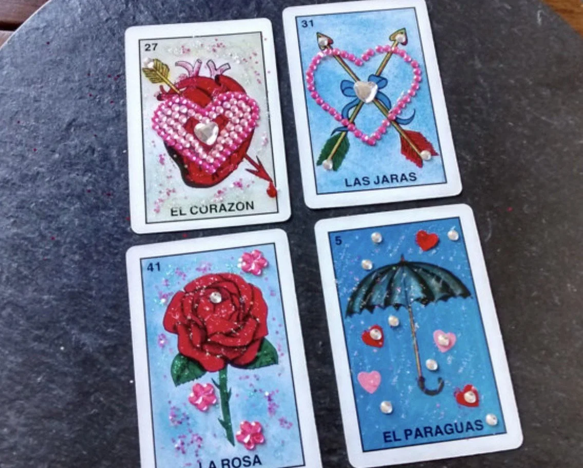 Have you ever played Mexican bingo before? Loteria cards are known for their vibrant and colorful illustrations and their cultural significance in bringing family and friends together through play. Taking inspiration from the bingo cards, we will design our set of cards with a variety of materials to personalize, embellish and collage with. Everyone is encouraged to bring any special items they'd like to incorporate, including photographs, magazine clips, personal writing or poems.
