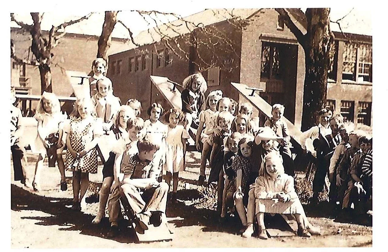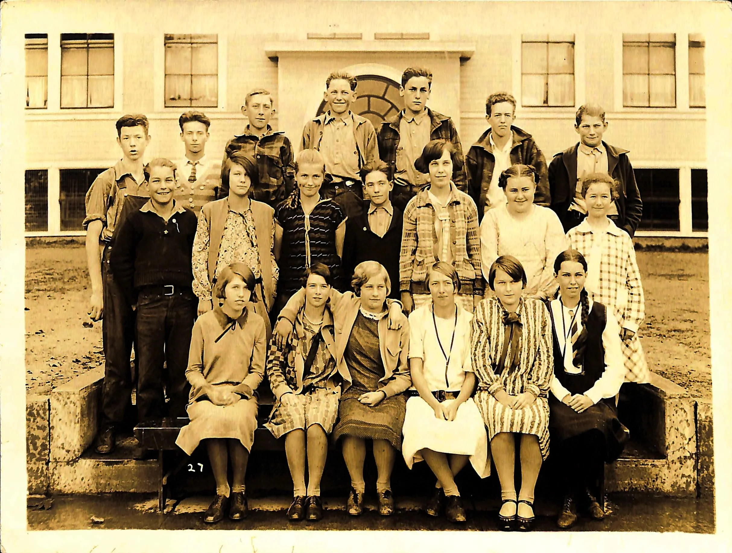 In 1935, the third and final school was built on this site. It still housed grades 1-6. The principal at the time was Mabel Rush. It was built, in part, thanks to the Works Progress Administration. The brick facade pays homage to Newberg’s first main industry and matches the brick of Newberg Library, across the street.