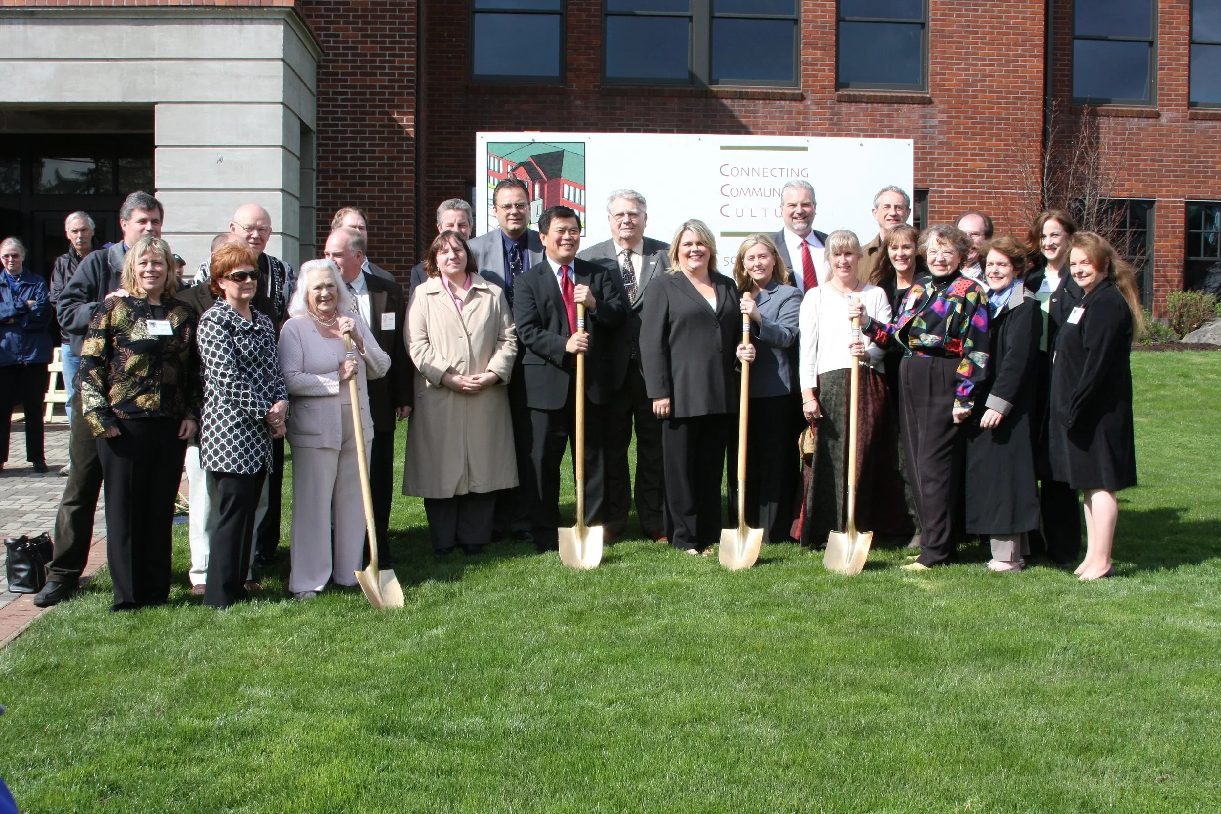 Thanks to the hard work of dedicated community members, the Chehalem Cultural Center broke ground in 2009 and opened in 2010. At the time, only the Parrish gallery, ceramics studio, and classrooms were usable. In 2014, the school’s gym was renovated into the Central Ballroom. In 2019, the Cox Family Culinary Center opened. And in 2024, the Lajoie Theater opened, as well as additional gallery space and a movement studio.