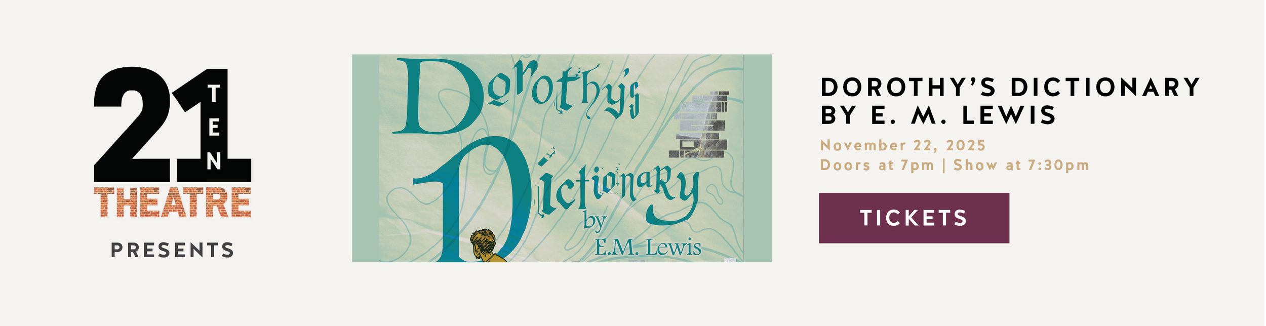 Dorothy’s Dictionary was the winner of the 2022 Portland Civic Theater Guild New Play Award, written by E.M. Lewis and directed by Ted Rooney. DOROTHY’S DICTIONARY has been developed with the support of LineStorm Playwrights, The Public Theater of San Antonio, and Theatre 33 at Willamette University. A developmental workshop was produced by The Dramaworkshop at Palm Beach Dramaworks, January 2021 -- William Hayes,Producing Artistic Director; Sue Ellen Beryl, Managing Director. Dorothy’s Dictionary was the winner of the Portland Civic Theater Guild New Play Award, and received a virtual staged reading produced by the PCTG as part of the 2022 Fertile Ground Festival of New Works in Portland, Oregon. Dorothy’s Dictionary had its world premiere at Theatre Lab in Boca Raton, Florida in 2022, directed by Matt Stabile. Our production is the pacific northwest premier.