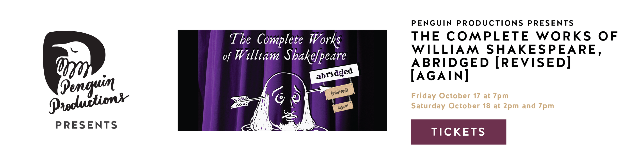 An irreverent, fast-paced romp through the Bard’s plays, The Complete Works of William Shakespeare (abridged) was London’s longest-running comedy having clocked a very palpable nine years in London’s West End at the Criterion Theatre! Join these madcap men in tights as they weave their wicked way through all of Shakespeare’s Comedies, Histories and Tragedies in one wild ride that will leave you breathless and helpless with laughter.