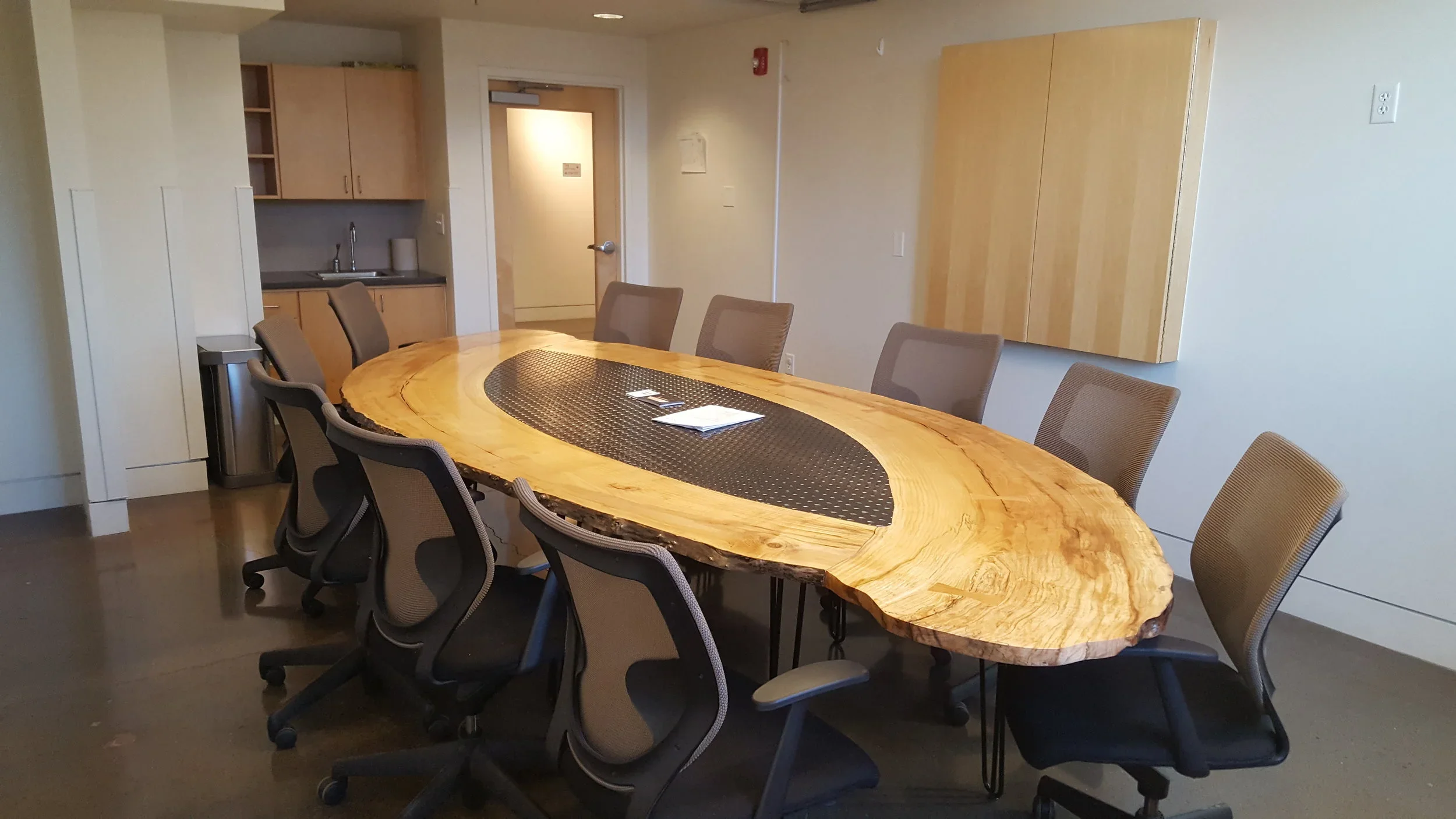 Have a meeting on top of art itself! This custom table created by a local artist seats 12 to 15 people for a comfortable meeting space.
