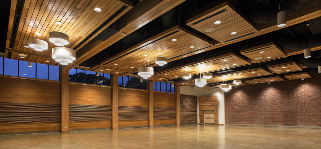 Our Grand Ballroom offers the perfect space for your special day with elegant, high ceilings and natural wood details.