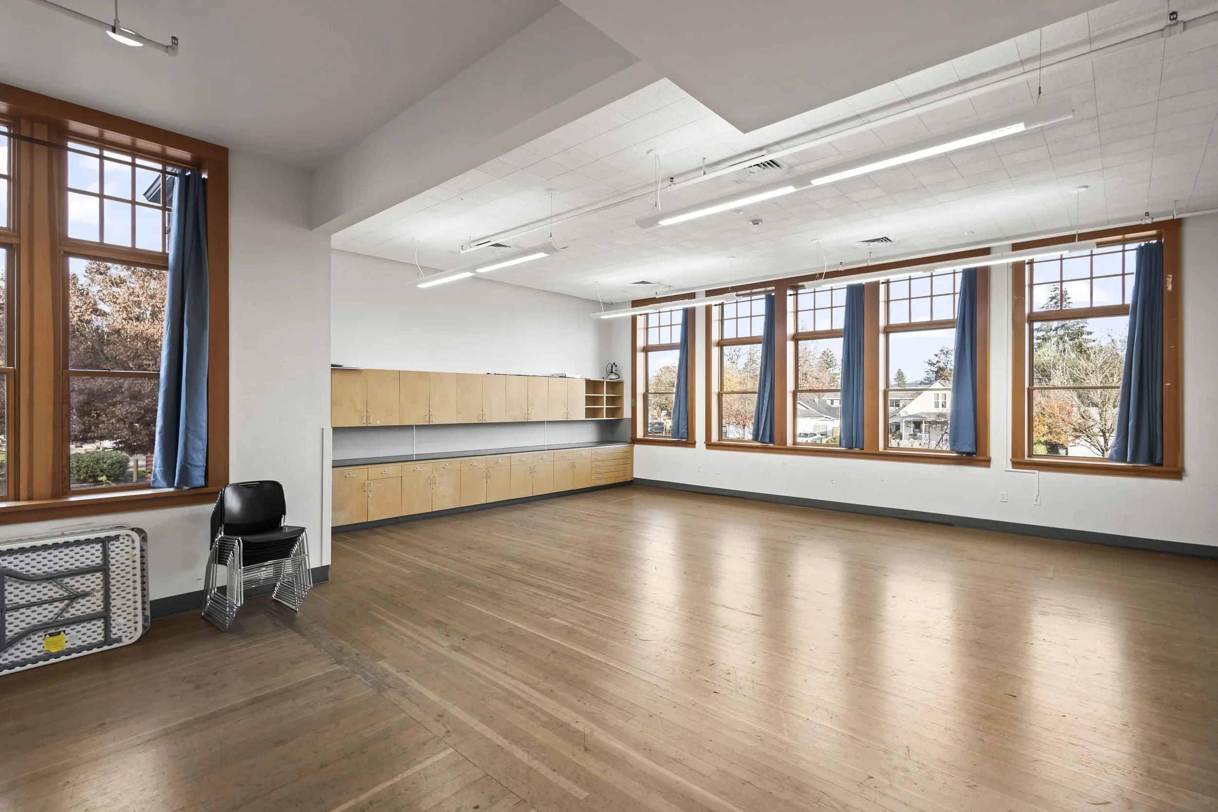 There are two classrooms available upstairs with seating for up to 40 people each.